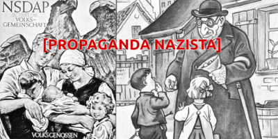 Nella seconda immagine, vedete due esempi di propaganda nazista anti-semita: una bella famigliola ariana, e un ebreo che corrompe dei bambini (al tempo venivano rappresentati in maniera caricaturale come “nasuti” e spesso panciuti). Di lì a poco, cinque milioni di ebrei sono finiti nei lager. Assieme a omosessuali, lesbiche, “zingari”, testimoni di Geova, malati mentali, comunisti e altri nemici politici. Tutto però ha richiesto un passaggio “sulla carta”, cioè una comunicazione ben accessibile, che ha reso tollerabili e persino giustificate queste misure agli occhi della popolazione generale.