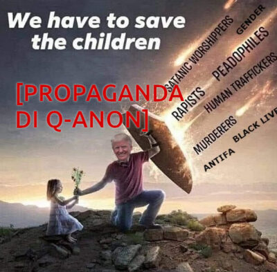 Un uso inquietante di questo tipo di propaganda, oggi, lo vediamo anche da parte dei fanatici di Q-anon, con un “mirabile” sincretismo (terza immagine). Essi, come accadeva nel Medioevo, credono che certi gruppi uccidano i bambini per nutrirsene, come nell’Accusa del Sangue, anche se “post-modernamente” chiamano in causa una molecola derivante dalla biochimica del corpo. Sempre secondo loro, esisterebbe un complotto che tiene segreto tutto ciò.