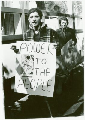 (nella foto, Sylvia Rivera col famoso cartello “power the people” ad una delle marce che seguirono ai moti di Stonewall)