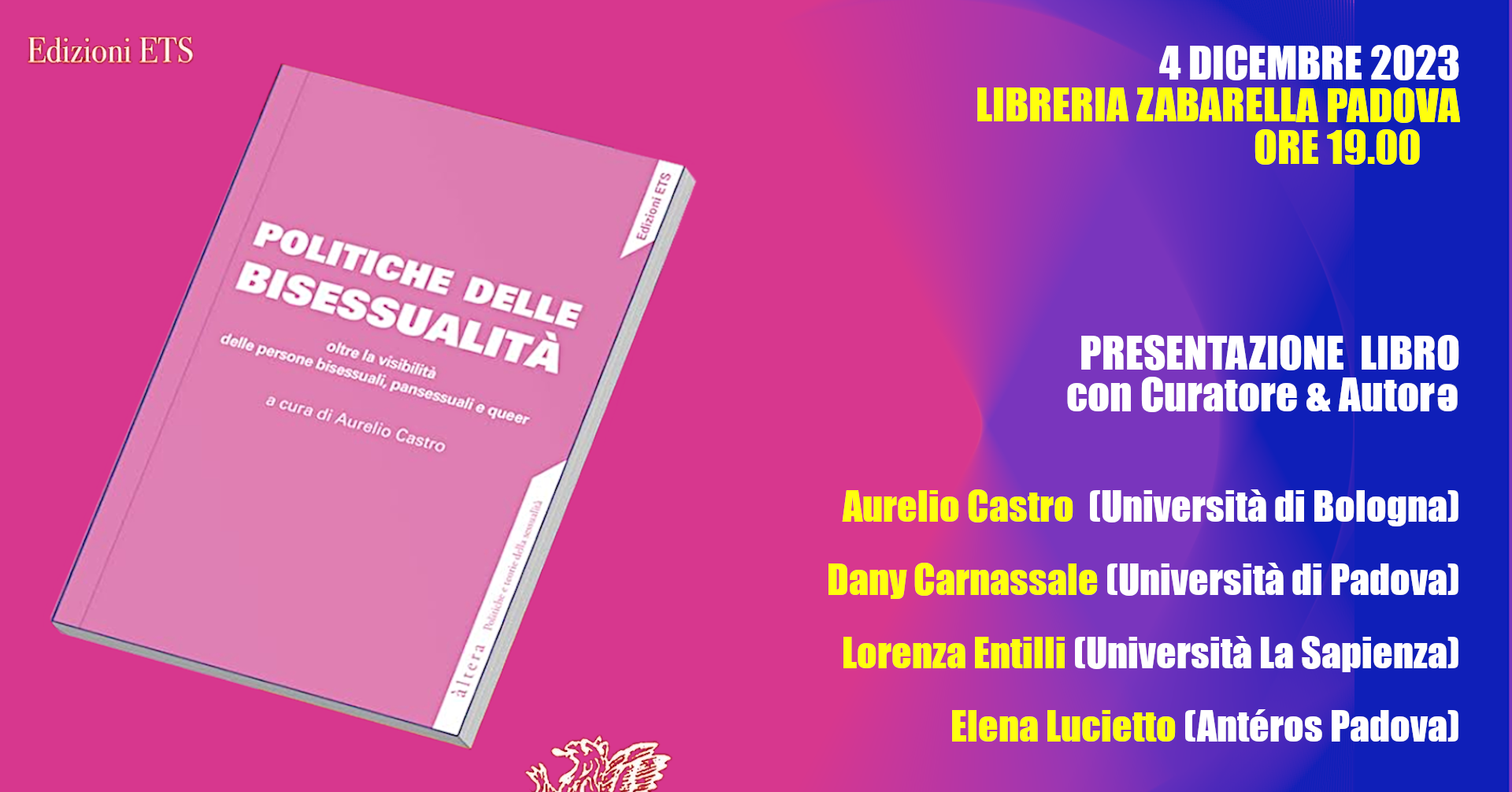 Presentazione libro POLITICHE DELLE BISESSUALITÀ | 4 dicembre