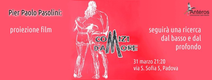 A partire dal film cercheremo di indagare il rapporto fra quelle immagini, apparentemente distanti, e il modo di parlare di sessualità che si è imposto oggi, provando anche a cercare risposte attuali per alcune delle domande che Pasolini poneva ai suoi interlocutori…